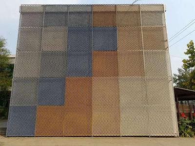 鋁板網(wǎng)特點:具有不生銹,色澤美觀,鋁板網(wǎng)被應用于建筑裝飾室外幕墻時,由于其金屬材料的堅固性,使它可以輕易的抵御風暴等不利氣候因素的侵襲,同時易于維護,單純從觀賞角度看,鋁板網(wǎng)具有絲織品的特點,給人以視覺享受,用作室內(nèi)的屋頂或隔斷墻時,其材質的通透性和光澤感賦于空間更多的審美樂趣。