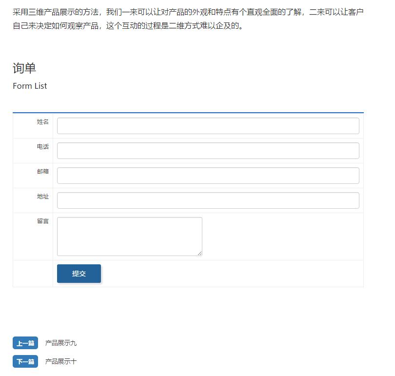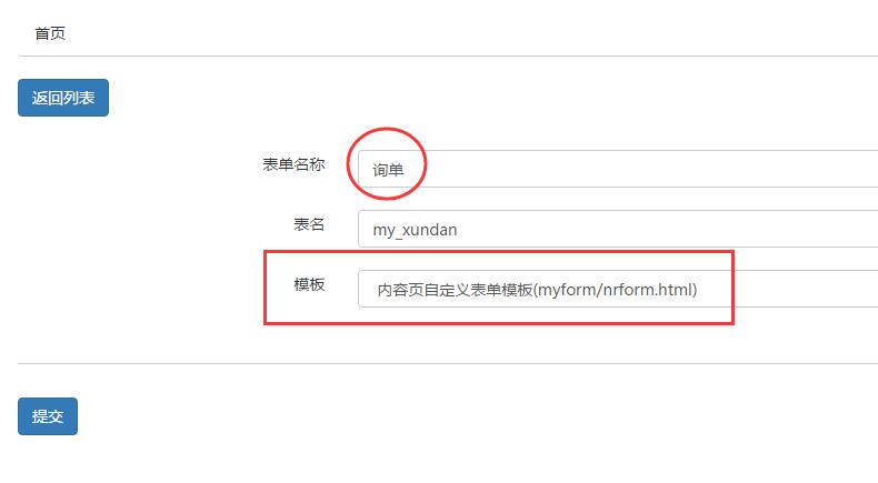 設(shè)置綁定表單后,該欄目下的內(nèi)容頁中,會出現(xiàn)表單提交顯示,如圖: