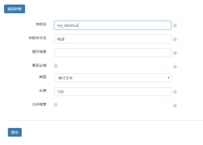 提交后,生成一個新表單,但表單內(nèi)容為空,如何向表單添加字段可參考如圖: