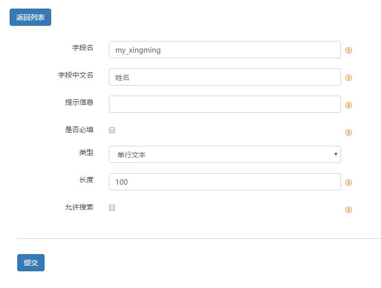 提交后,生成一個新表單,但表單內容為空,如何向表單添加字段可參考如圖: