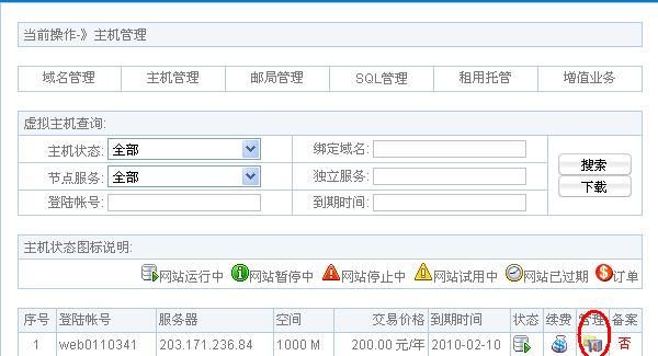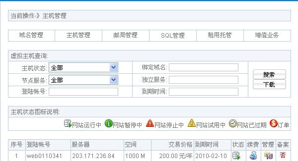 點(diǎn)擊“管理按鈕”進(jìn)入相應(yīng)的主機(jī)管理頁面