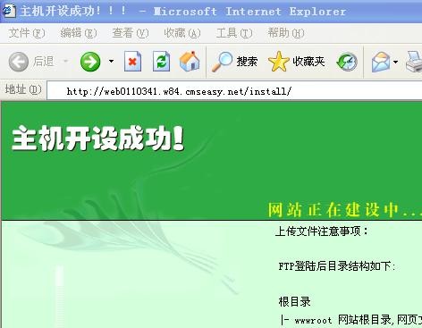 請記住FTP帳號:web0110341,及網(wǎng)站贈送的2級域名:http://web0110341.w84.cmseasy.net,以備后用;
