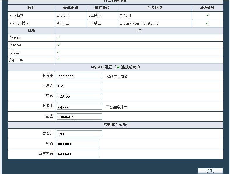 點(diǎn)擊右下角的“檢查安裝環(huán)境“,連接成功后,點(diǎn)擊”安裝“按鈕
