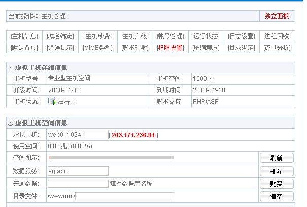 點(diǎn)擊“管理按鈕”進(jìn)入相應(yīng)的主機(jī)管理頁面