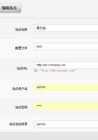 然后,在后臺(tái) [設(shè)置] - 左側(cè)- [站點(diǎn)列表],在里面添加或者編輯一個(gè)您要切換網(wǎng)站后臺(tái)的具體信息,如: